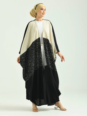 Filizzade Üç Renkli Önü Açık Ferace Siyah Puanlı