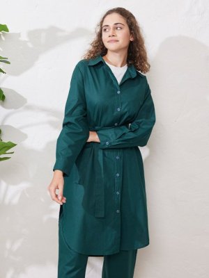 Ceylan Otantik Petrol Uzun Gömlek