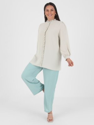 Alia Büyük Beden Fırfır Detaylı Tunik Buz Beyazı