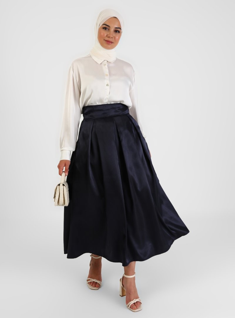 BÜRÜN Lacivert Pileli Etek