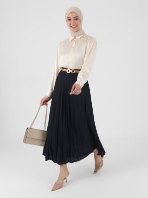 Rabia Karancı Lacivert Piliseli Etek