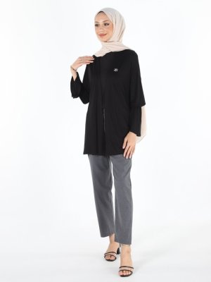 PLİSTRE Koyu Gri Beli Lastikli Pantolon