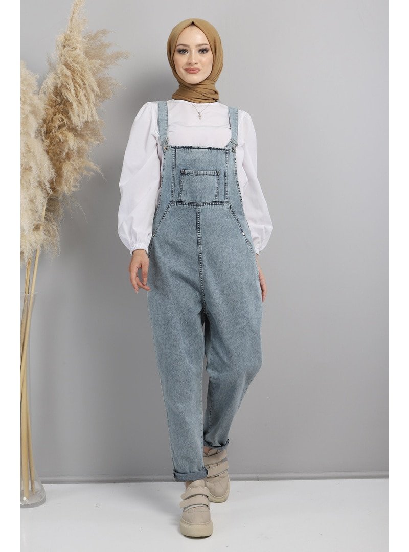 Tesettür Dünyası Kar Yıkamalı Kot Tulum Açık Mavi