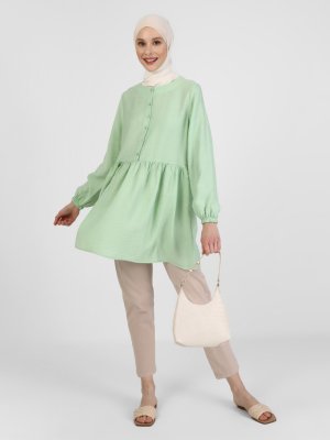 Benin Su Yeşili Balon Kol Rahat Kesim Tunik