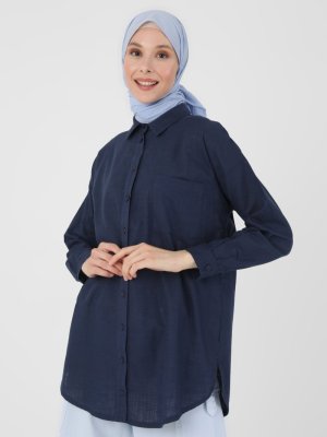 Benin Lacivert Keten Görünümlü Rahat Tunik