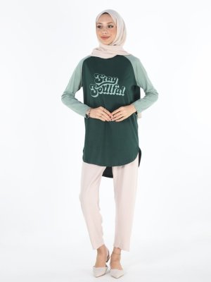 PLİSTRE Baskılı Tunik Koyu Yeşil