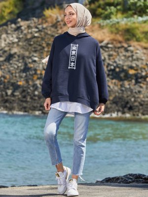 Tofisa Lacivert Kapüşonlu Tunik