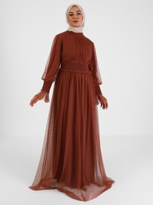 Tavin Tarçın Bel Ve Kol Uçları Gipe Detaylı Abiye Elbise