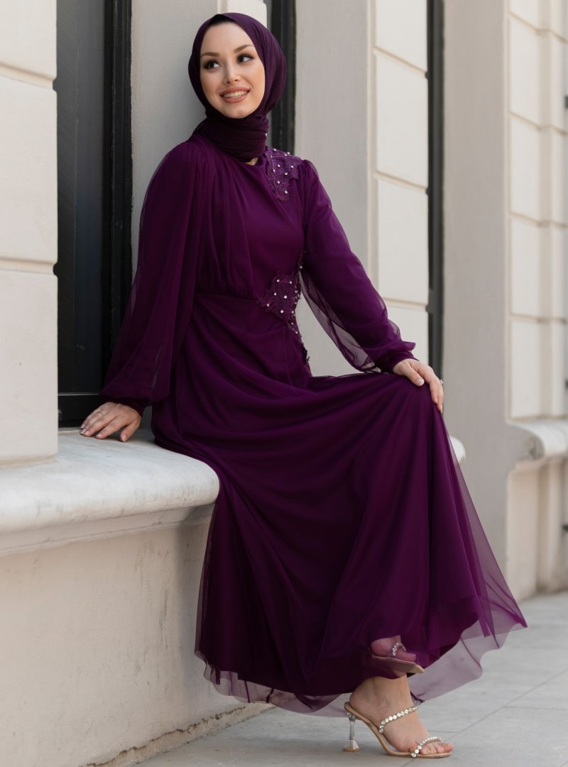 Tofisa Mor Güpürlü Abiye Elbise