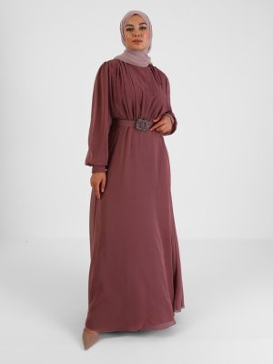 Tavin Gül Kurusu Taşlı Kemerli Abiye Elbise