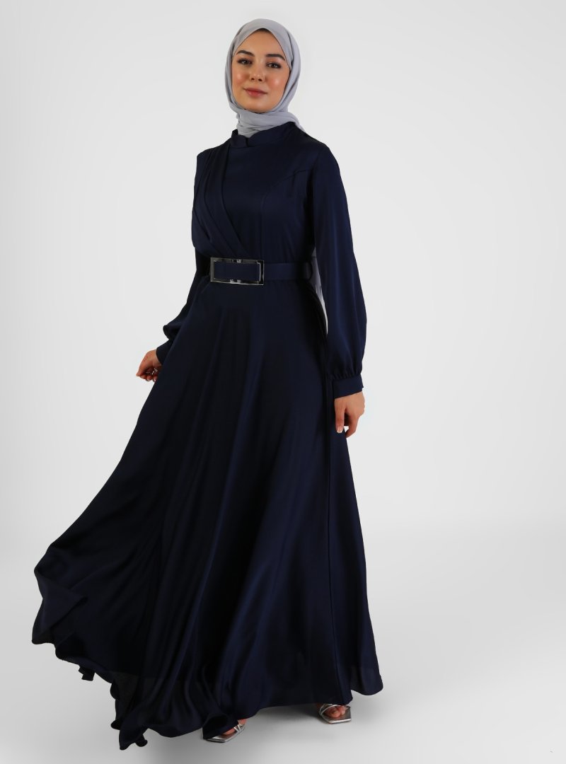 BÜRÜN Lacivert Kemerli Abiye Elbise