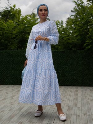 Sevit-Li Mavi Desenli Elbise