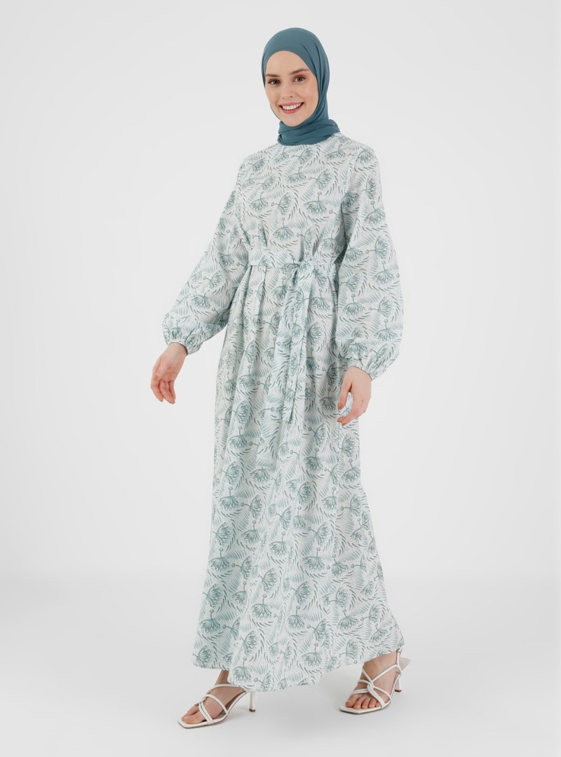 Refka Çağla Doğal Kumaşlı Desenli Elbise
