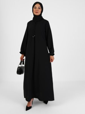 Tavin Siyah A Pile Fiyonk Yaka Detaylı Elbise Koyu