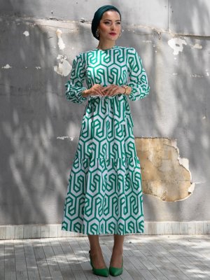 Sevit-Li Yeşil Desenli Elbise