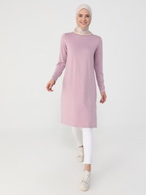 Refka Koyu Gül Kurusu Viskon Kumaştan Bisiklet Yaka Tunik