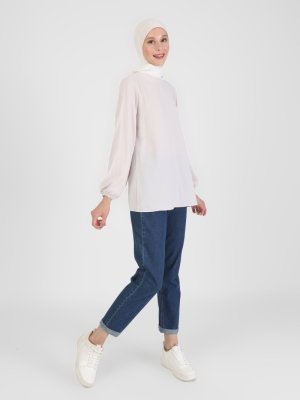 Refka Vanilya Ucu Lastikli Balon Kol Aerobin Bluz