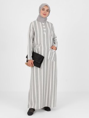 Tavin Siyah Cep Detaylı Çizgili Elbise