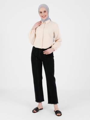 Benin Siyah Paçası Püsküllü Denim Kot Pantolon