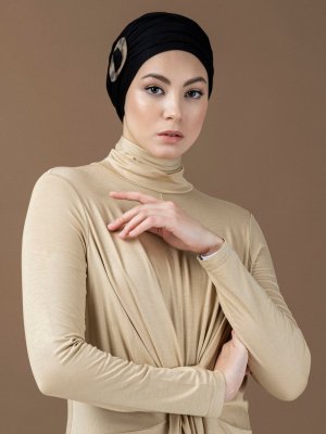 Halima X Modanisa Siyah Tokalı Hazır Türban Gece