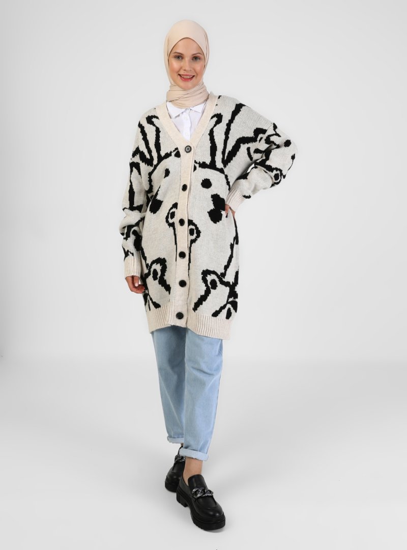 Benin Jakarlı Triko Hırka Açık Taş