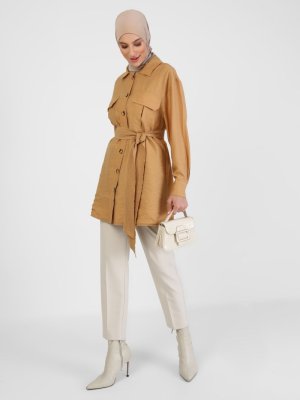 Refka Camel Cep Ve Kemer Detaylı Safari Ceket