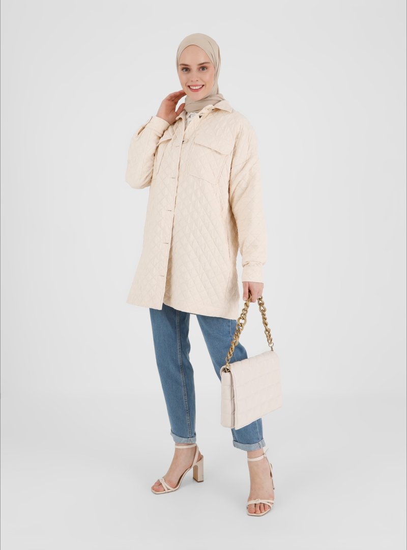 Refka Vanilya Kapitone Kumaşlı Cep Detaylı Ceket
