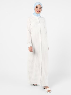Tavin Mavi Pamuk Keten Gizli Düğmeli Çizgili Ferace