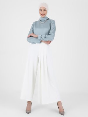 Refka Açık Çağla Manşetli Balon Kollu Saten Bluz
