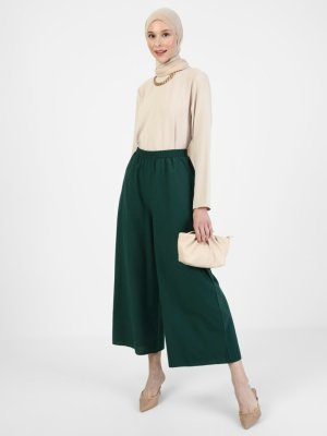 Refka Zümrüt Geniş Paça Beli Lastikli Pamuklu Pantolon