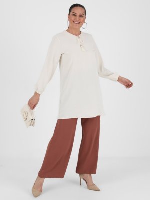 Alia Beli Lastikli Büyük Beden Pantolon Çikolata