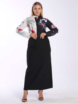 Haki Tekstil Siyah Büyük Beden Uzun Etek