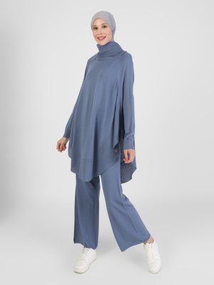 Refka İndigo Rahat Kesim Tunik & Pantolon İkili Triko Takım