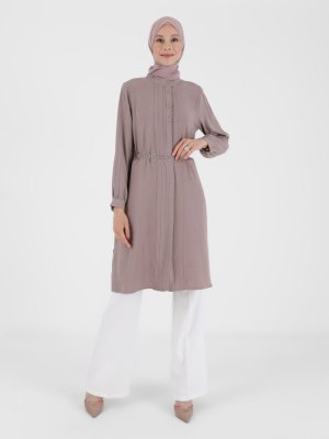 Refka Nervür Detaylı Aerobin Uzun Tunik Derin Pembe