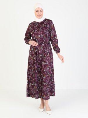 GELİNCE Mürdüm Desenli Elbise
