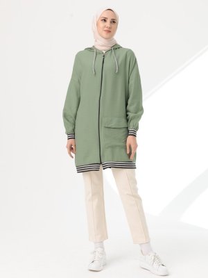 Tofisa Haki Fermuarlı Kapüşonlu Kap