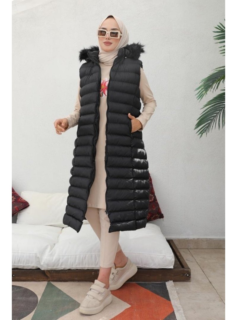 Benguen Siyah Kapüşonlu Şişme Yelek