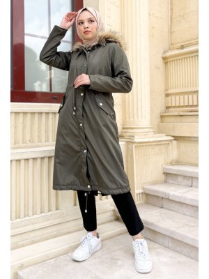 Tesettür Dünyası Haki Eteği Bağlamalı Bondit Mont