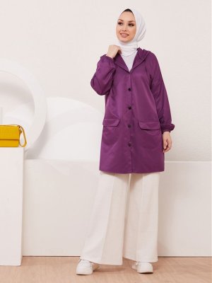 Tofisa Mor Düğmeli Kapüşonlu Trençkot