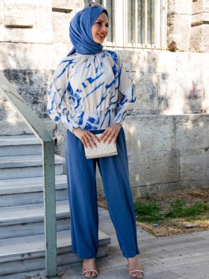 Tofisa Desenli Bluz Mavi