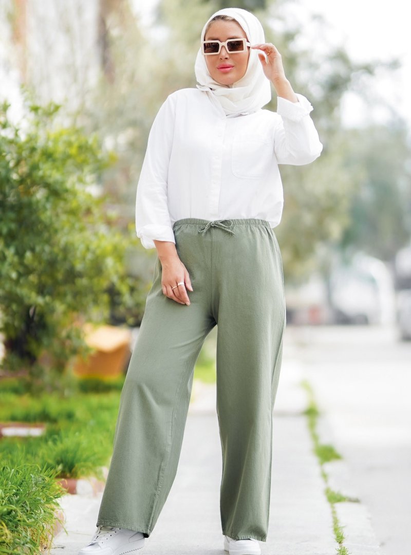Por La Cara Haki Beli Lastikli Bağcıklı Pantolon