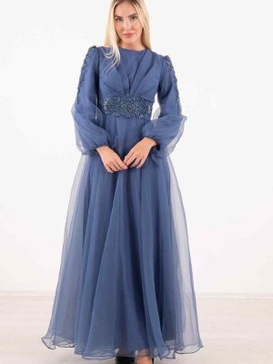 Ardanewline İndigo Taş İşlemeli Abiye Elbise