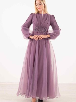 Ardanewline Lavanta Taş İşlemeli Abiye Elbise