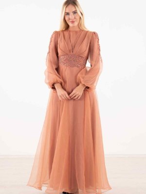 Ardanewline Somon Taş İşlemeli Abiye Elbise