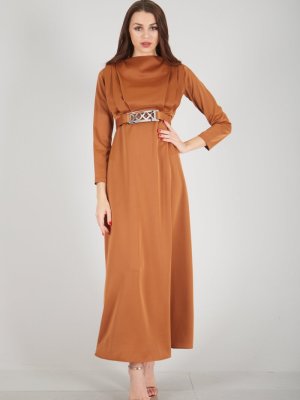 Ardanewline Taba Uzun Kol Saten Abiye Elbise