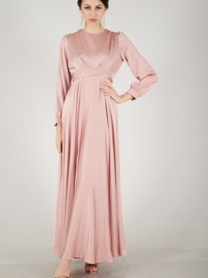 Ardanewline Pudra Kloş Astarsız Saten Abiye Elbise