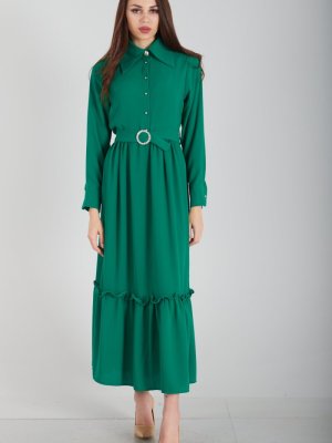 Ardanewline Zümrüt Düğmeli Astarsız Elbise