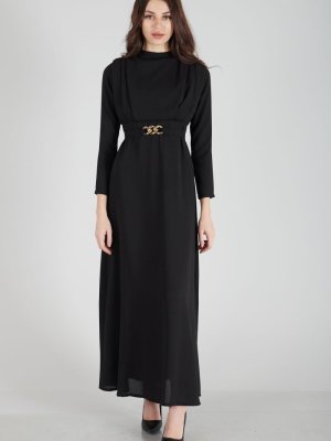 Ardanewline Siyah Üzeri Pilise Detaylı Elbise