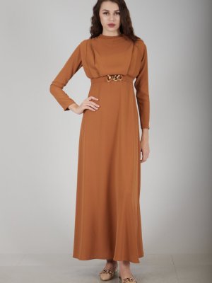 Ardanewline Camel Üzeri Pilise Detaylı Elbise