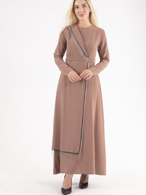 Ardanewline Camel Eteği Kapaklı Modeli Elbise